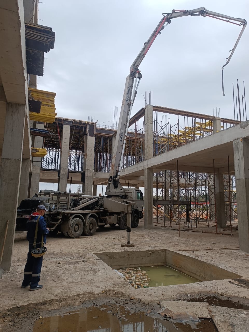 Аренда бетононасоса в Калуге, Туле, Москве. Прием заявок ежедневно и без выходных. Профессиональные операторы. Работа на строительных площадках с ограниченным доступом к объекту заливки. Собственный автопарк.  Длина вылета стрелы от 24м до 54м.